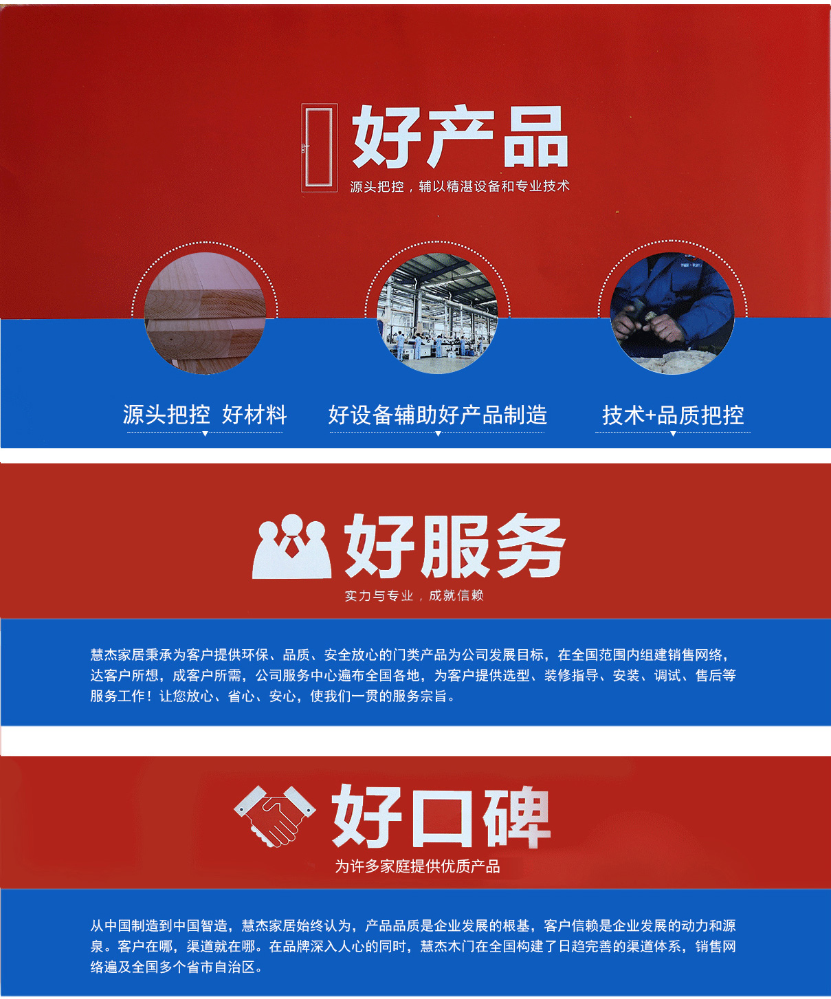浙江慧杰門業(yè)有限公司坐落在位于浙江省江山市,這里交通十分便捷,距離高鐵火車站僅只有半小時的車程,距離高速公路江山出口更是方便。本公司是一家專門從事木門研發(fā)和銷售服務(wù)為一體的現(xiàn)代化企業(yè),我們以自己的務(wù)實(shí)風(fēng)格,創(chuàng)造精神,科學(xué)管理,為消費(fèi)者提供更好的產(chǎn)品和更好的服務(wù),從而為大家營造了一個又一個,溫馨和諧的幸福大家庭!